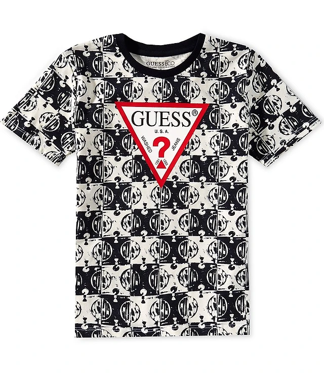 Guess Little Boys Short Sleeve Logo Checker Guess T-Shirt