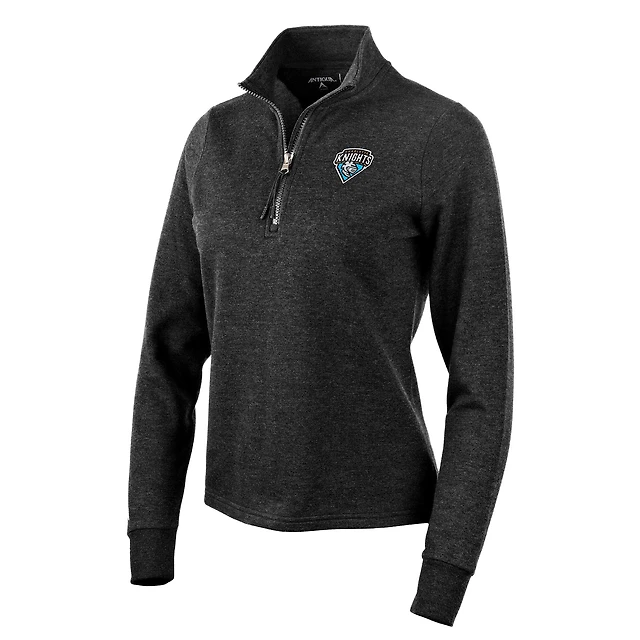 Women's Antigua Heather Navy Indiana Pacers Brushed Metallic Comfort Quarter-Zip Pullover Top