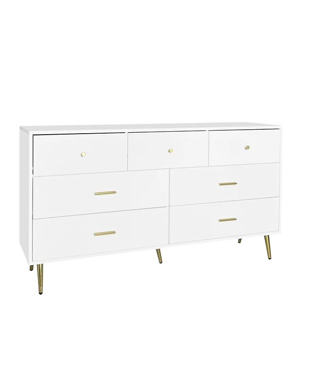 Modern Chest of Drawers – 7-Drawer Dresser with Golden Handles & Legs, Stylish Storage for Bedroom
