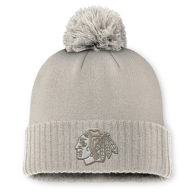 Women's Fanatics White/Gray Chicago Blackhawks Fundamental Mist Cuffed Knit Hat with Pom