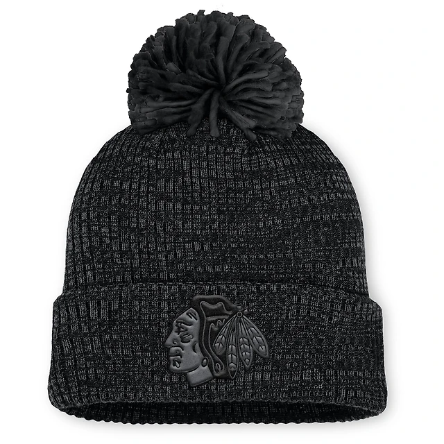 Women's Fanatics Black Chicago Blackhawks Authentic Pro Rink Cuffed Knit Hat with Pom
