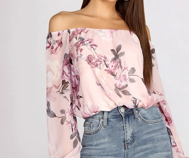 Floral Chiffon Off The Shoulder Blouse