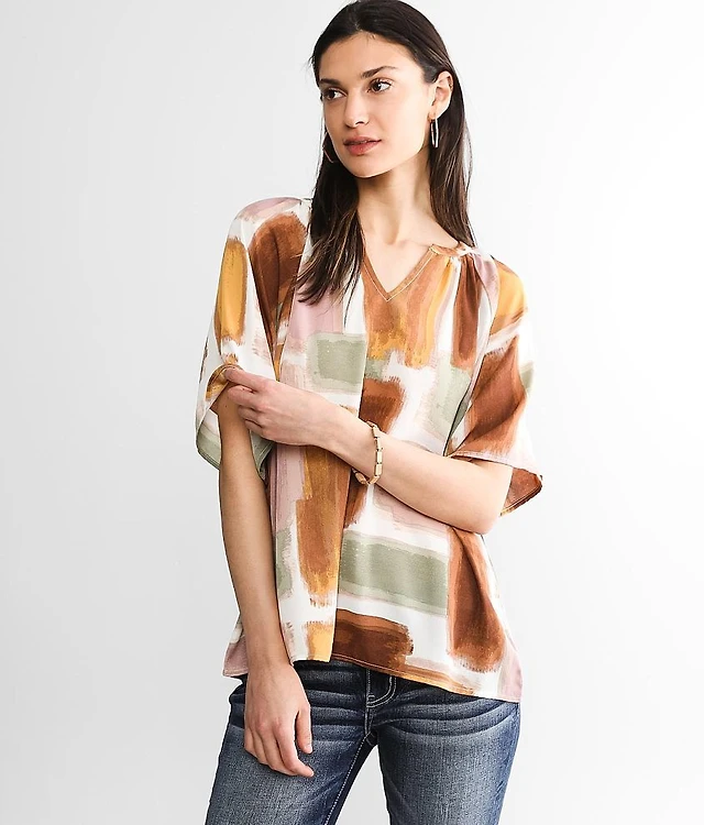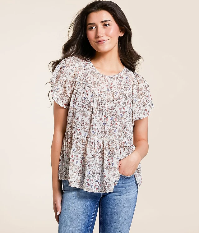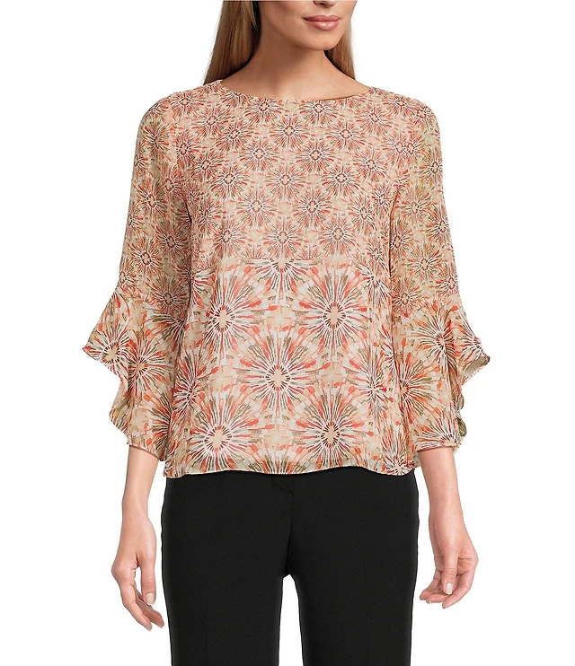 Kasper Petite Ruffle Sleeve Floral Print Blouse
