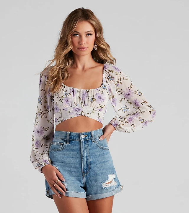 Femme Floral Chiffon Sweetheart Top