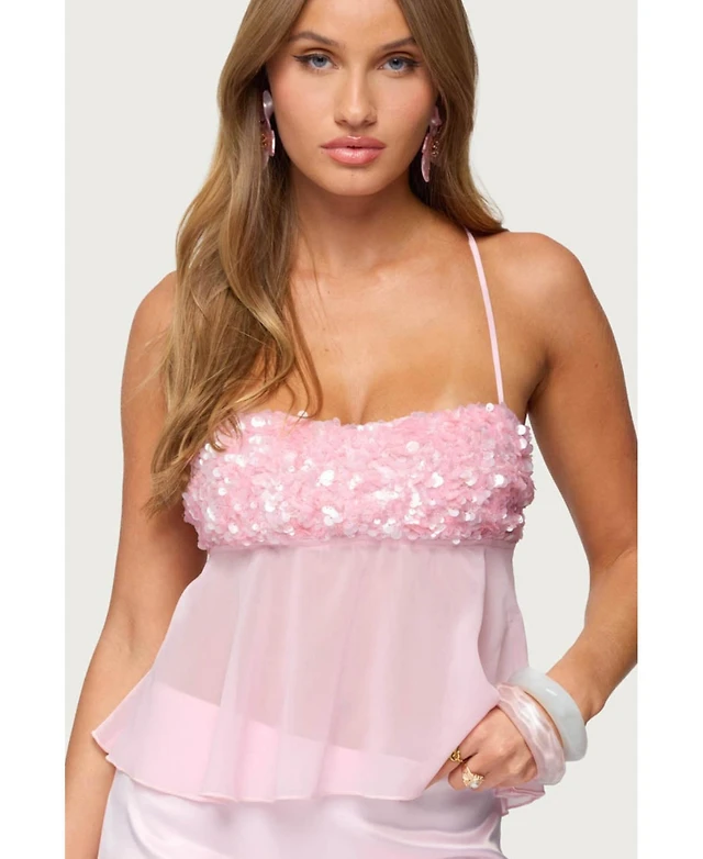 Edikted Women's Opal Bead & Sequin Chiffon Tank Top