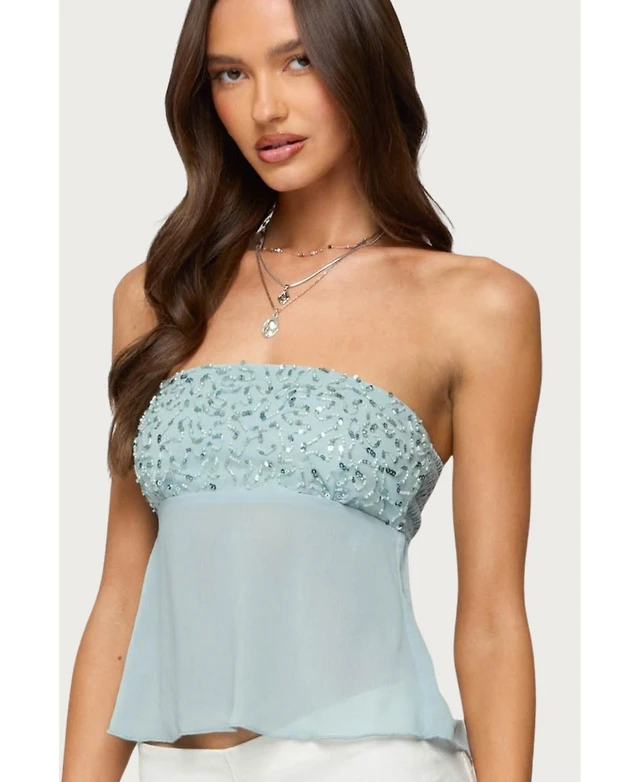 Edikted Women's Nelley Backless Beaded Sequin Chiffon Top
