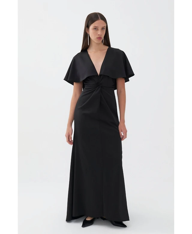 Milla Women's Black Fitted Maxi Dress With Puffy Tiered Skirt