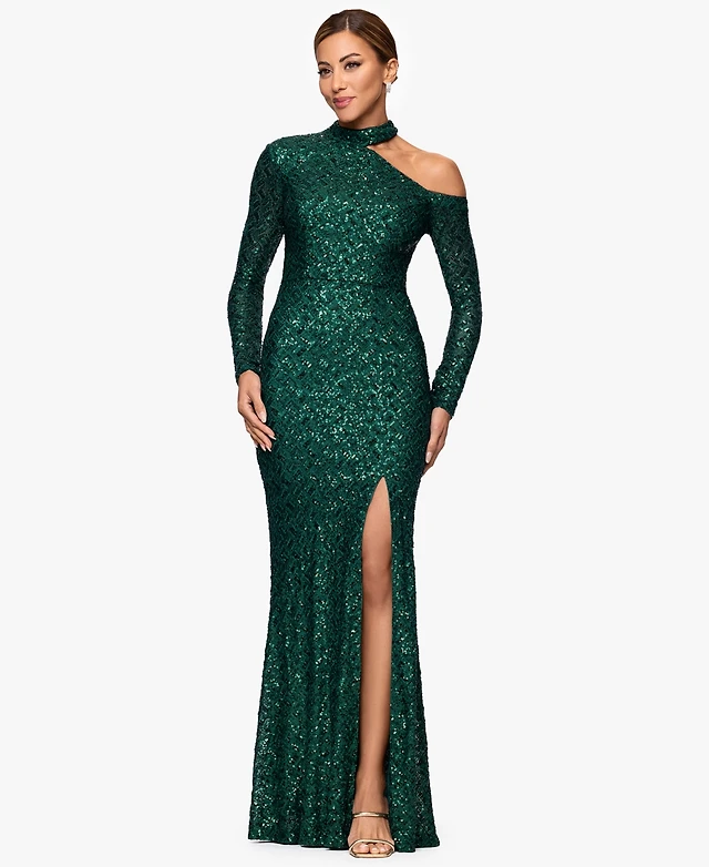 Sl Fashions Women's Glittered Illusion-Sleeve Dress
