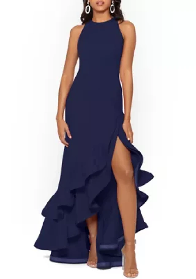 Betsy & Adam Women's Long Keyhole Neck Gown