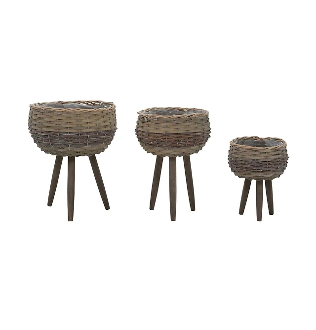 Ceramic Indoor Outdoor Planter with Wood Legs Set of 2