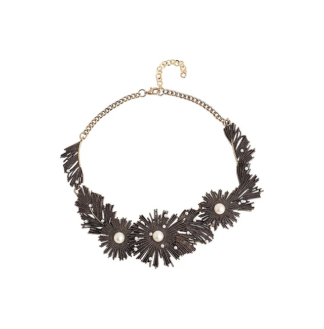 Sohi Women's Silver Leaf Bling Cluster Necklace And Earrings (Set Of 2