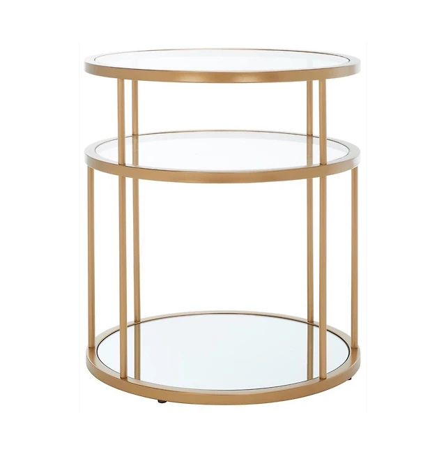 Industrial Wood and Iron Round End Table for Side or Accent Table