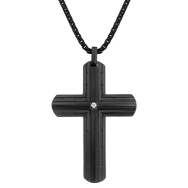 1/6 ct. t.w. Black Diamond Cross Pendant in Black Stainless Steel