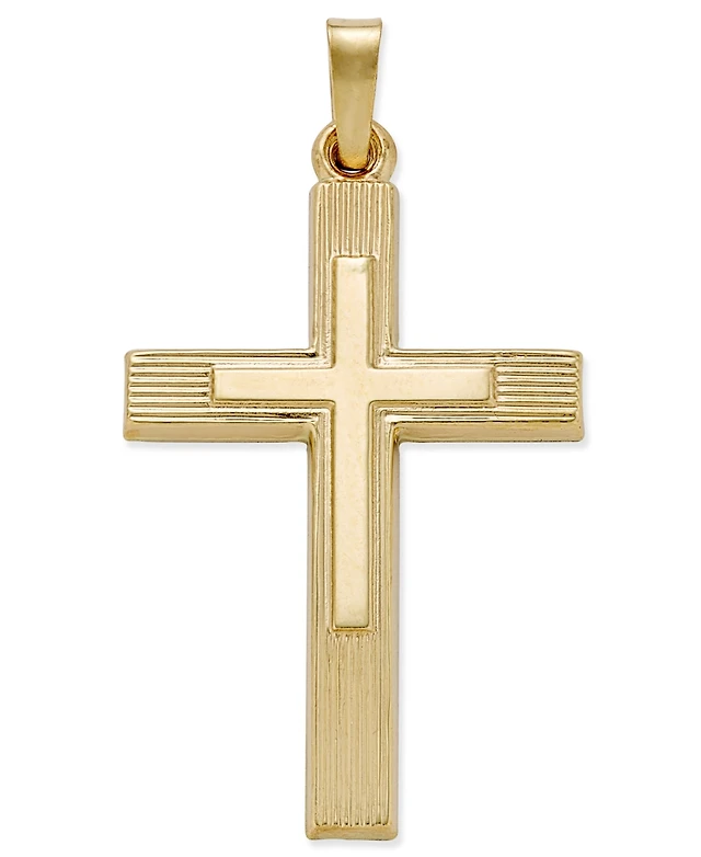 Stainless Steel Cross Pendant with Diamond Accent and Goldtone Ion Plating
