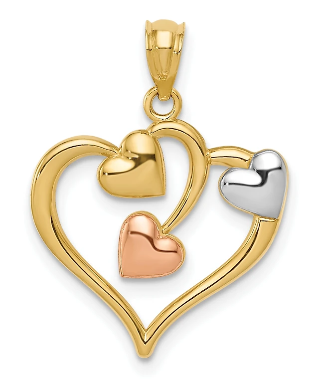 Three Hearts Pendant in 14k Yellow and Rose Gold over Rhodium