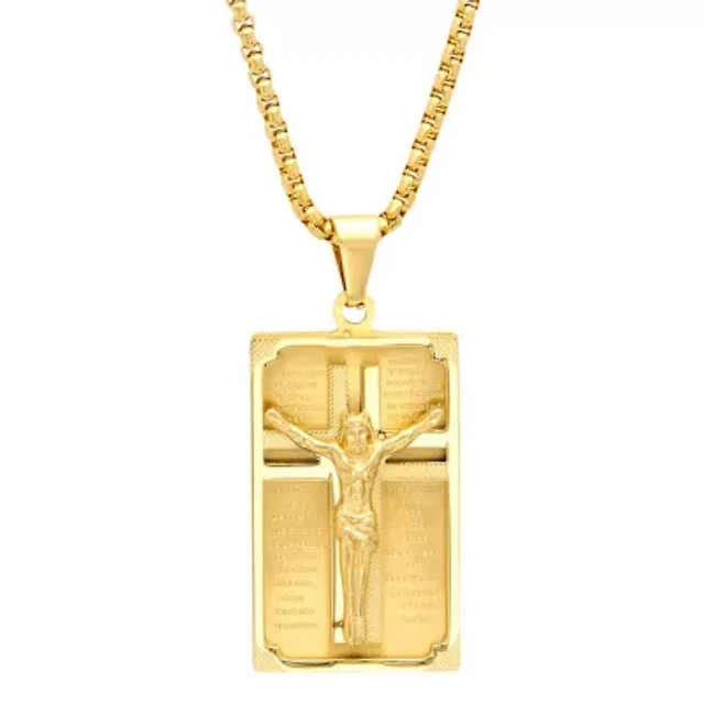 Men's 18k gold plated stainless steel crucifix padre nuestro prayer frame pendant
