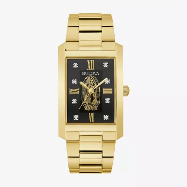Bulova Our Lady Of Guadalupe / Nuestra Señora De Guadalupe Mens Diamond Accent Gold Tone Stainless Steel Bracelet Watch 97d137