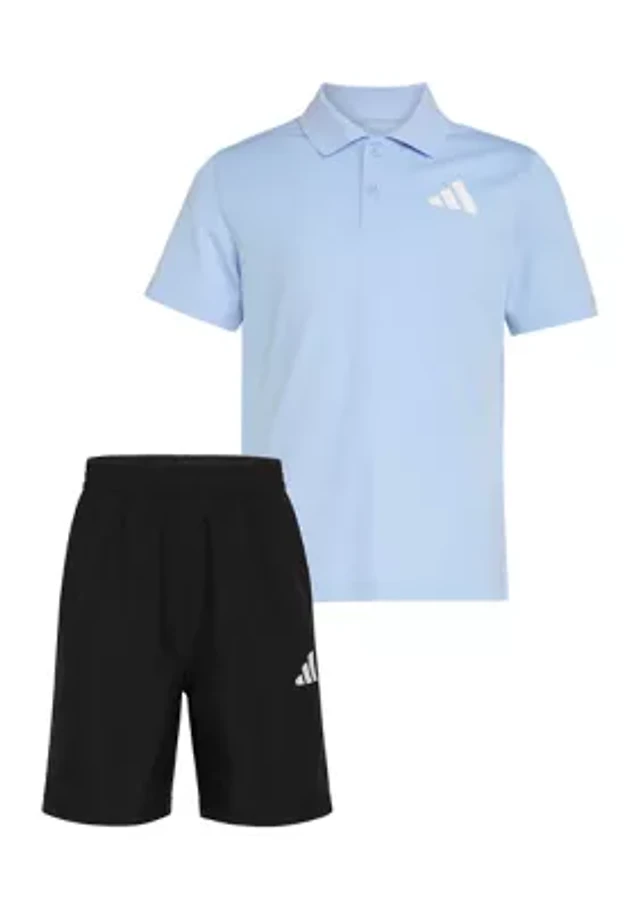 Boys 4-7 Two Piece Short Sleeve Cotton Heather T-Shirt & Elastic Waistband Logo Shorts Set