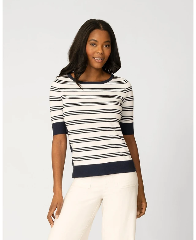 Jones New York Women's Striped Crewneck Sweater