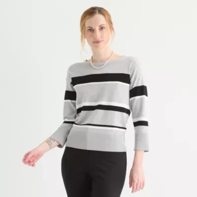 Alfred Dunner St Augustine Womens Split Crew Neck 3/4 Sleeve Pullover Sweater