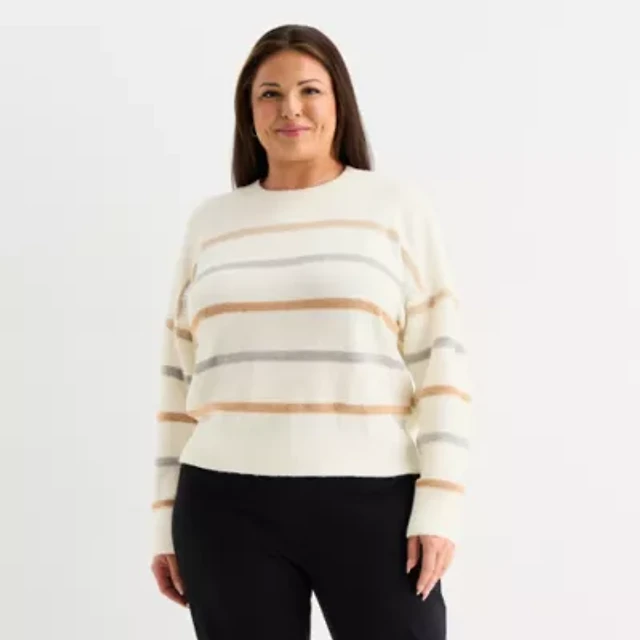 Alfred Dunner Barcelona Womens Round Neck 3/4 Sleeve Animal Layered Sweater Plus