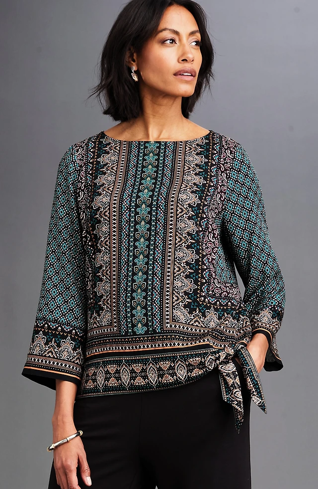 Alfred Dunner Caribbean Blues Womens 3/4 Sleeve Blouse
