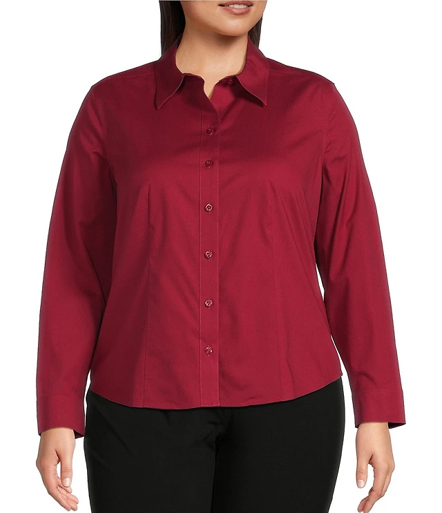 Lauren Ralph Lauren Plus Size Stripe Point Collar Long Sleeve Button Front Shirt