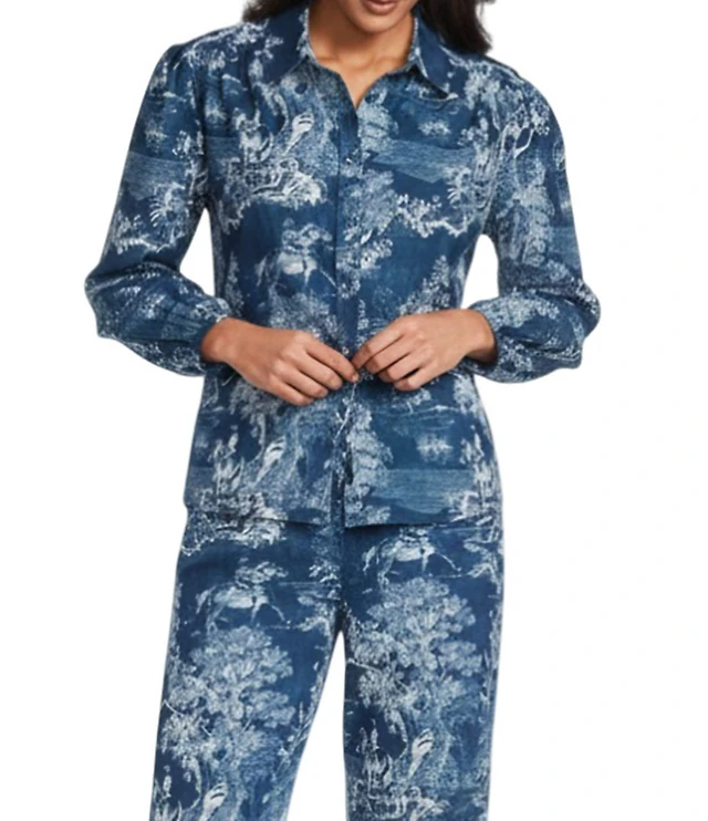 Reba Magnolia Coordinating Woven Voile Cowboy Toile Print Point Collar Long Sleeve Shirt