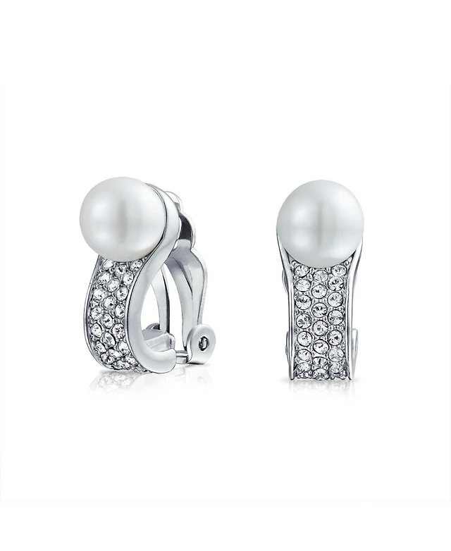 Bling Jewelry Simple Button Style Round Dome Bezel Pearl Clip-On Earrings Silver Plated Brass