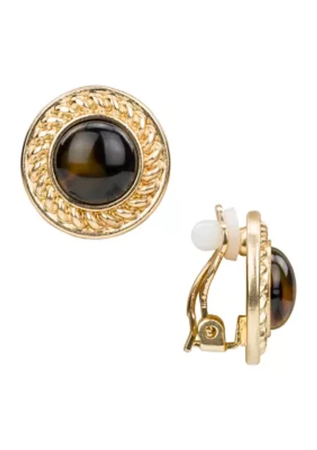 Anne Klein Gold-Tone Pave & Imitation Pearl Halo E-z Comfort Clip-On Button Earrings