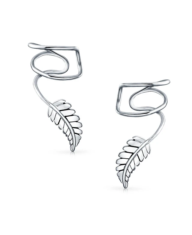 Bling Jewelry Double Leaf Feather Cartilage Ear Cuffs Clip Wrap Wire Earrings Helix Non Pierced Ear Oxidized Sterling Silver