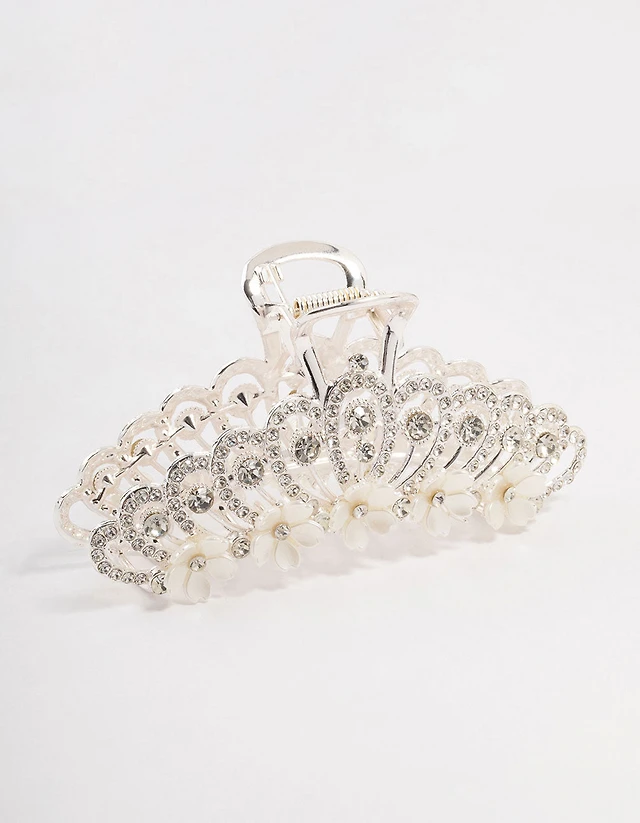 Rhinestone Embellished Triple Shell Curved Claw Clip