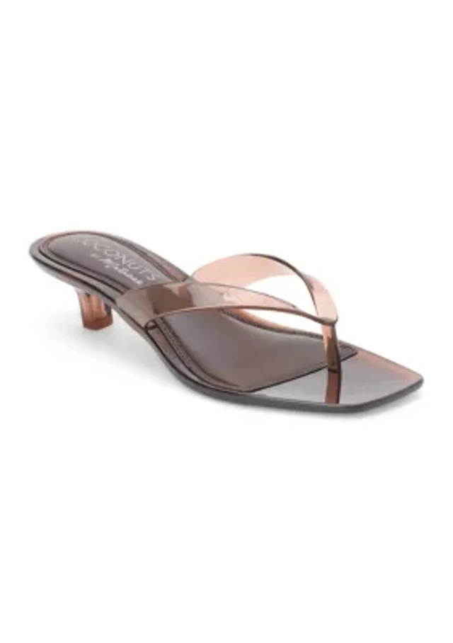 COACH Heritage Plaque Leather Kitten Heel Thong Sandals