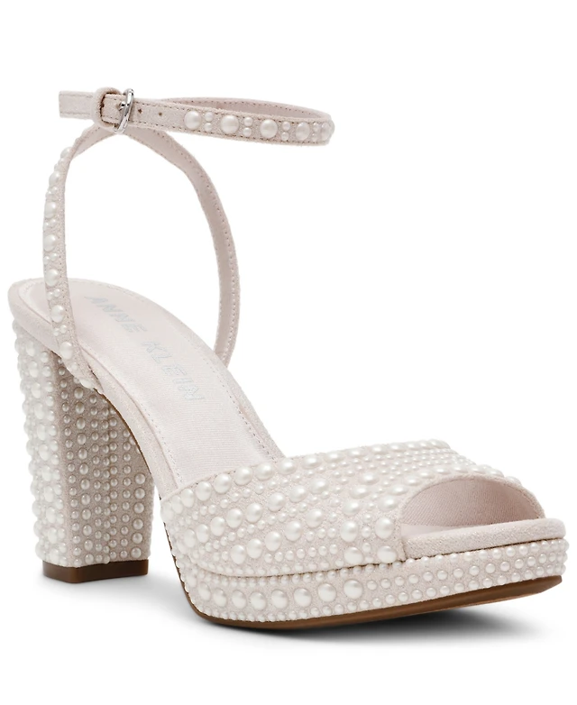 Alex Marie Halmar Patent Pearl Ornamented Strap Block Heel Sandals