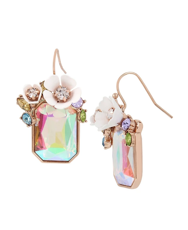 Betsey Johnson Faux Stone Flower Cluster Stone Drop Earrings