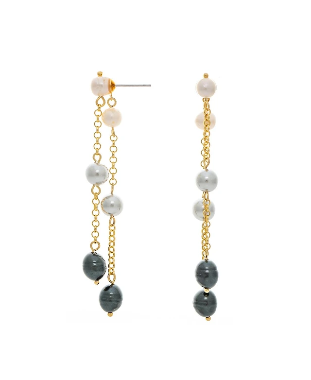 Effy Cultured Black Tahitian Pearl (9mm) & Cultured White South Sea Pearl (8mm) Drop Earrings in 14k Gold