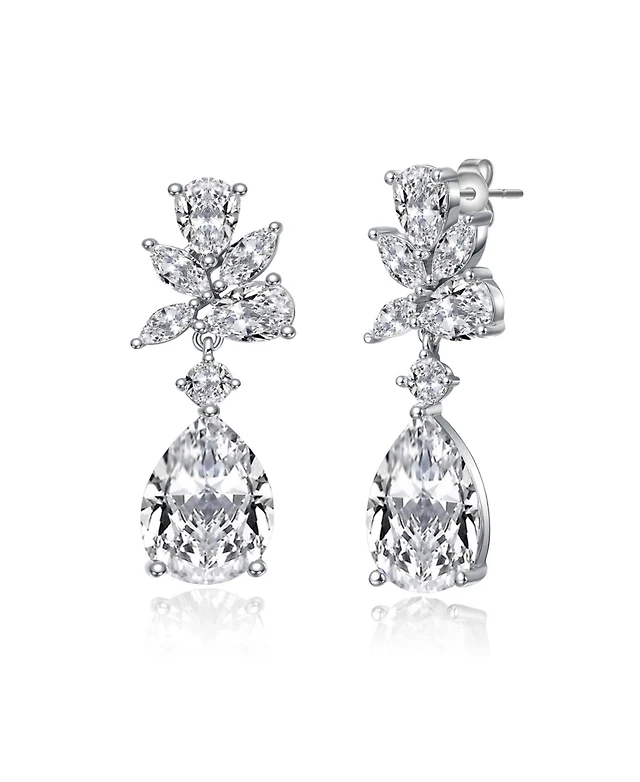 Sterling Silver with Cubic Zirconia Cluster Snowflake Formal Dangle Earrings