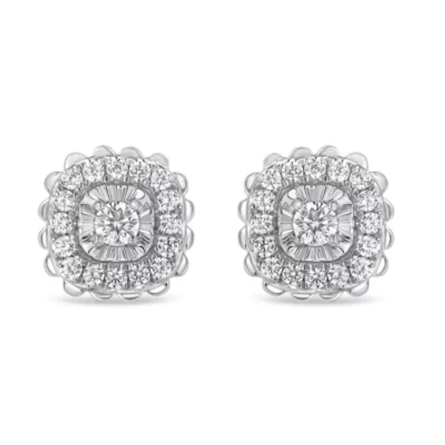 5mm Freshwater Cultured Pearl and Lab-Created White Sapphire Frame Stud Earrings in Sterling Silver
