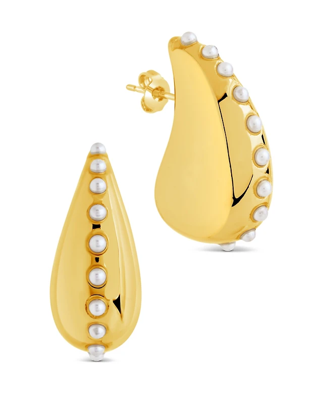 Simulated Pearl Huggie Hoop Earrings in Sterling Silver