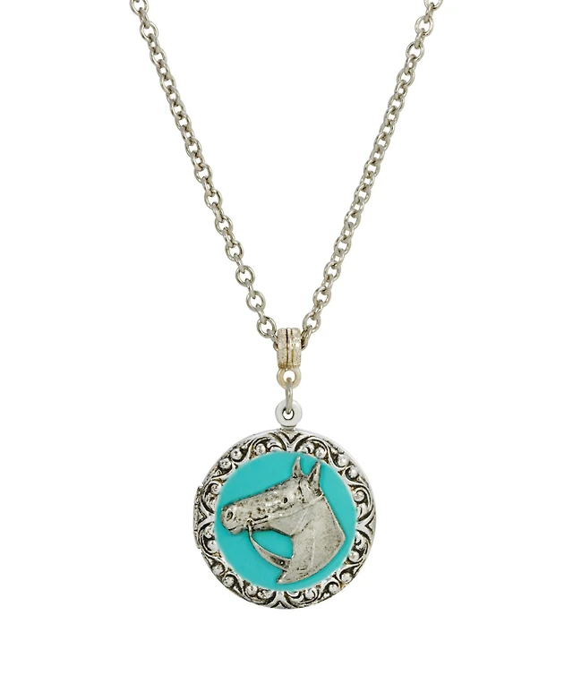2028 Faux Turquoise Oval Horse Locket Necklace