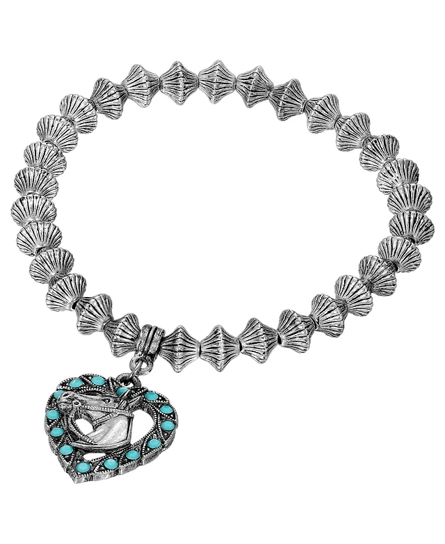 2028 Silver-Tone Clear Crystal and Horse Accent Hinge Bracelet