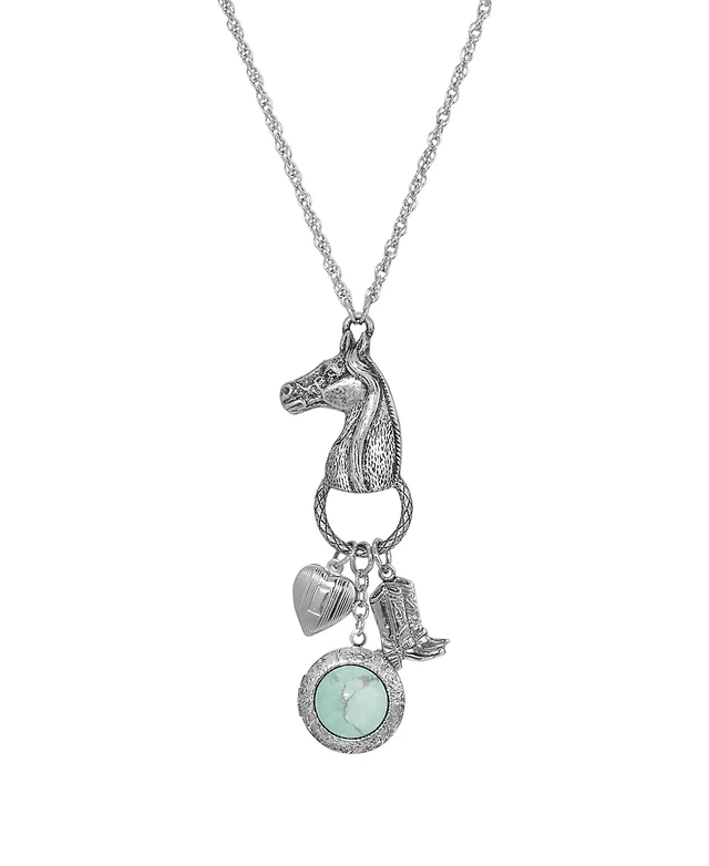 American West Jewelry Sterling Silver Picture Jasper Gemstone Spirit Horse Pendant Enhancer