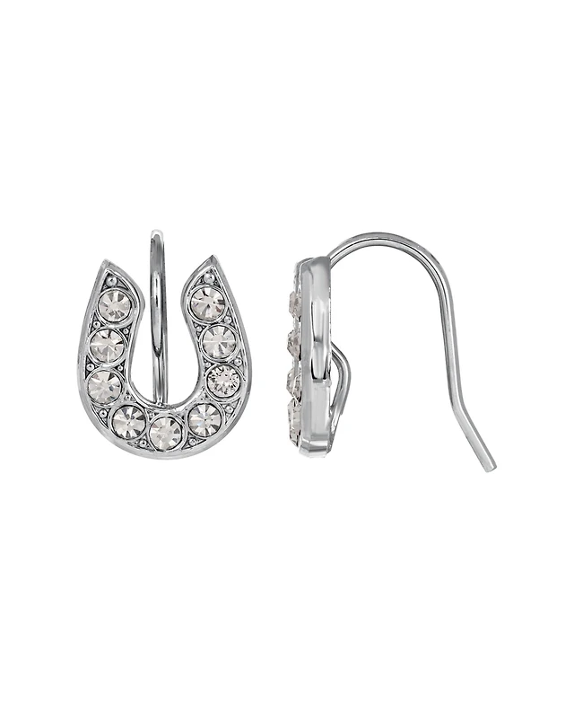 2028 Silver Tone Crystal Horseshoe Wire Earrings