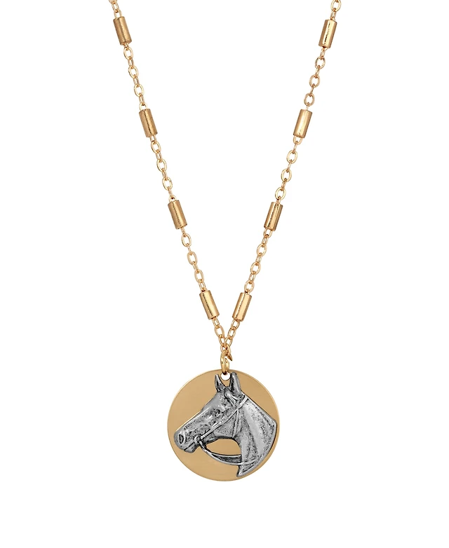 2028 Silver-Tone Horse Blue Crystal Necklace