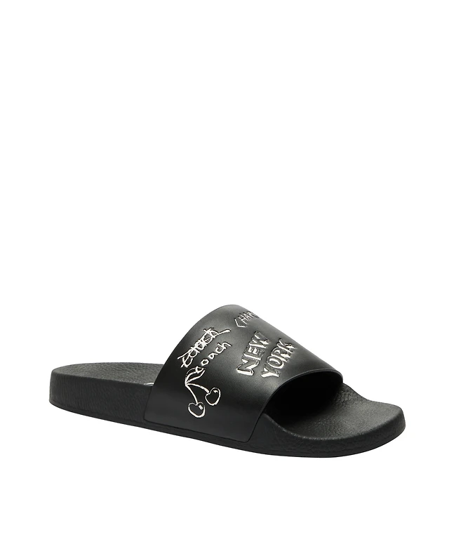 COACH Men's Leather Sketch Print Pool Slide Sandals