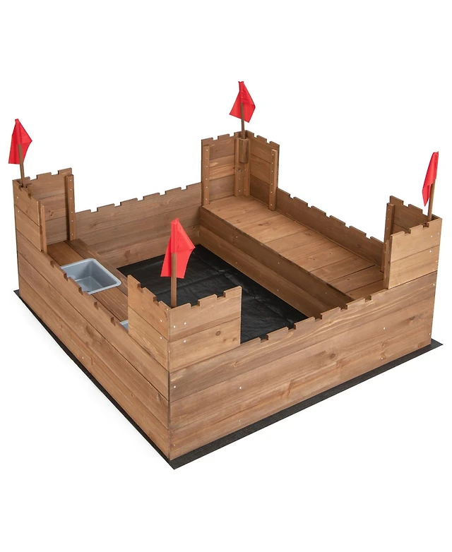 Kids Wooden Sandbox with Bottom Liner and Red Flags