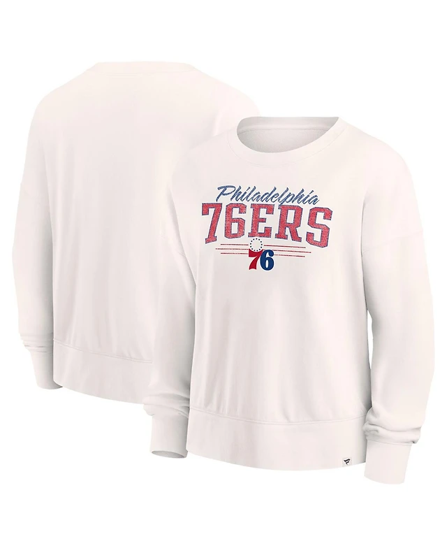 Women's Fanatics Cream Distressed Philadelphia 76ers Close the Game Pullover Sweatshirt