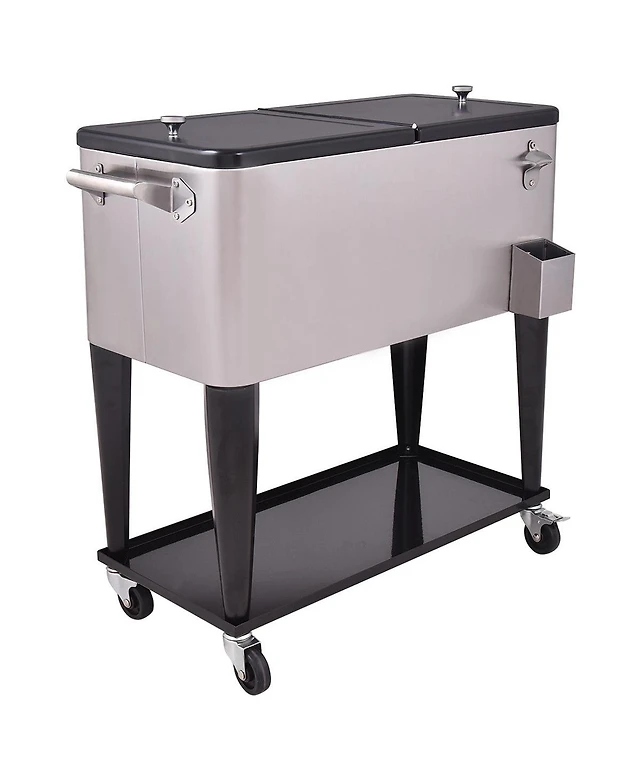 Skonyon 80 Quart Patio Rolling Stainless Steel Ice Beverage Cooler