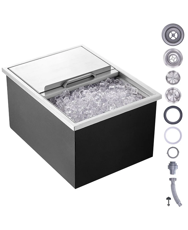 Mecale Drop-In Stainless Steel Ice Chest, 40.9 Qt with Sliding Lid