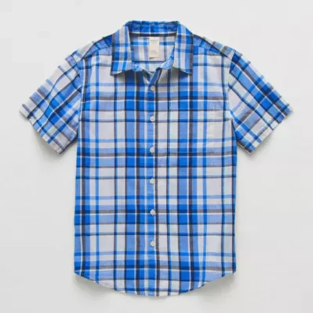 St. John's Bay Textured Gingham Mens Short Sleeve Classic Fit Big and Tall Button-Down Shirt